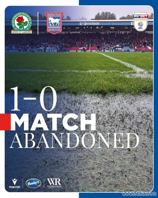 相关新闻:布莱克本与伊镇的赛事 因大雨中止德国足球甲级联赛,还剩11分钟没踢