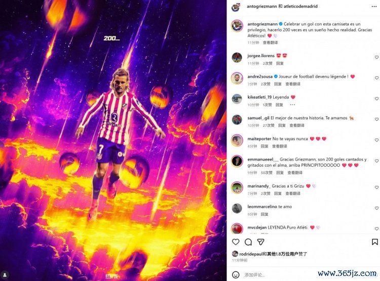 下一篇:格列兹曼达成马竞生涯200球里程碑,马竞官推晒海报:传奇!