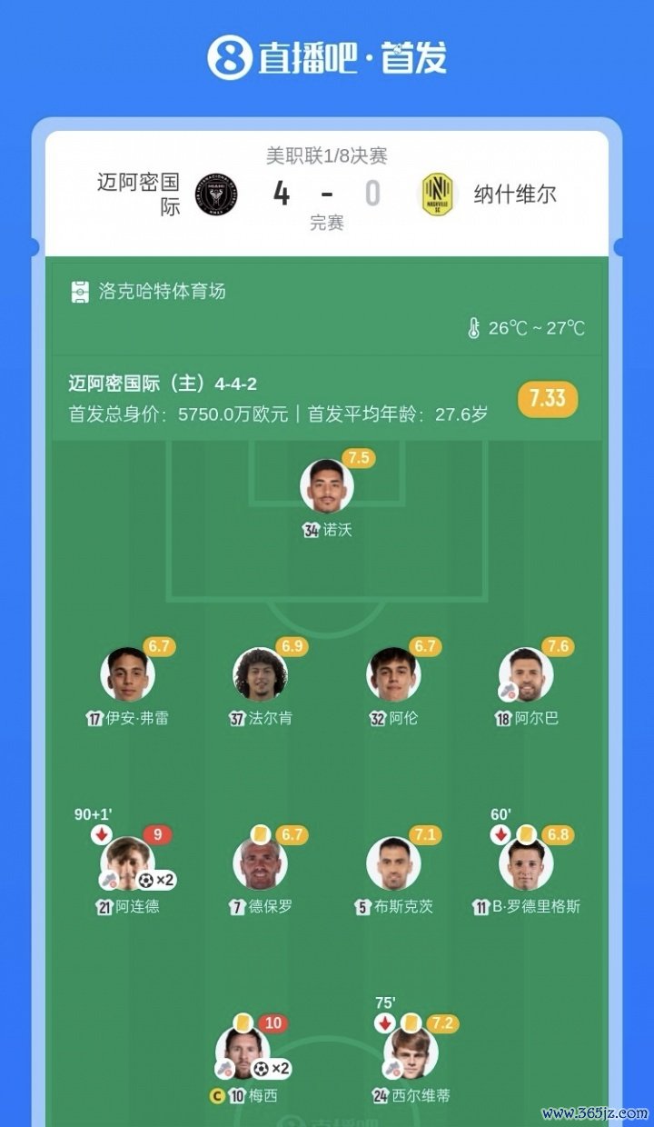 11月09日讯 美职联季后赛第三场,迈阿密国际4-0纳什维尔。