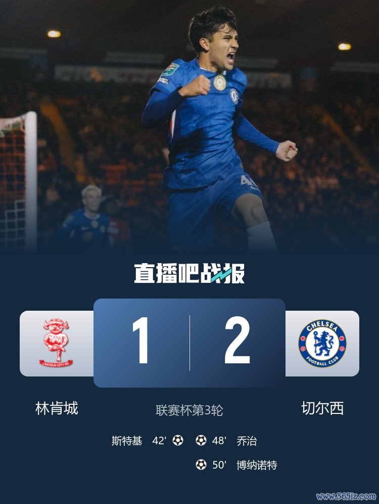 乔治传射,博纳诺特破门,最终切尔西2-1逆转林肯城晋级下一轮。
