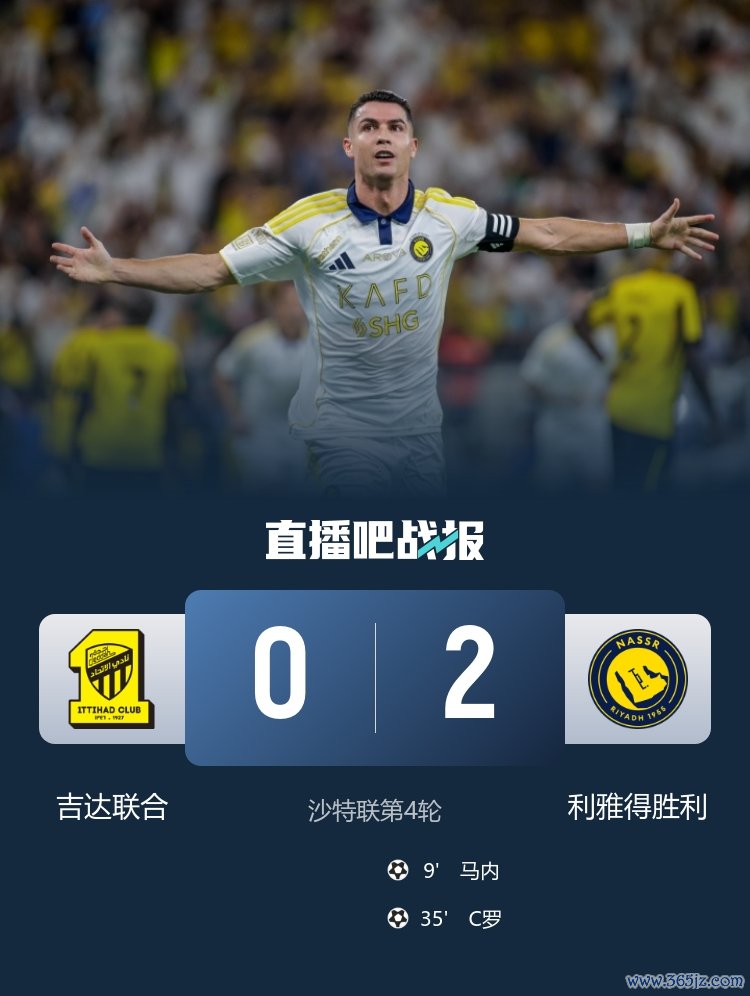 沙特联本轮焦点大战,田径新闻利雅得胜利2-0完胜吉达联合,C罗破门,马内完成传射,足球直播胜利此役后4连胜领跑。