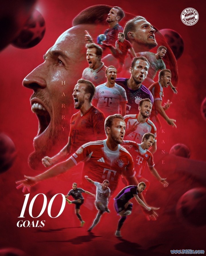 凯恩打进拜仁百球仅用104场,创造了21世纪五大联赛单一球队最快百球纪录。