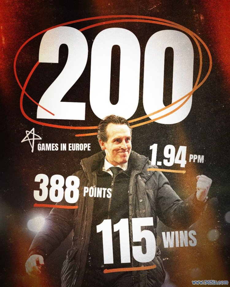 10月3日讯 阿斯顿维拉官方发布海报,祝贺主教练埃梅里完成执教生涯在欧战的第200场里程碑。