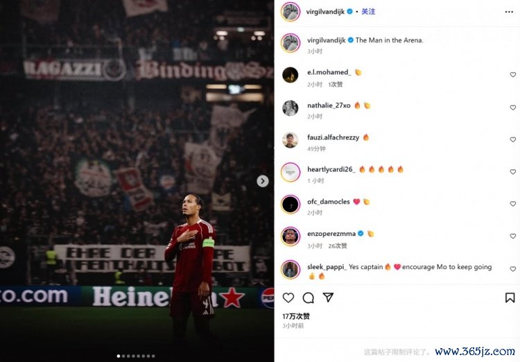 10月23日讯 利物浦在本轮欧冠焦点战5-1逆转法兰克福,队长范戴克也在赛后通过社媒晒照纪念。