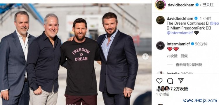 迈阿密老板之一贝克汉姆晒出管理层和梅西的合照雨燕直播足球直播在线直播免费观看, 田径新闻体育直播并配文:梦想仍在继续。