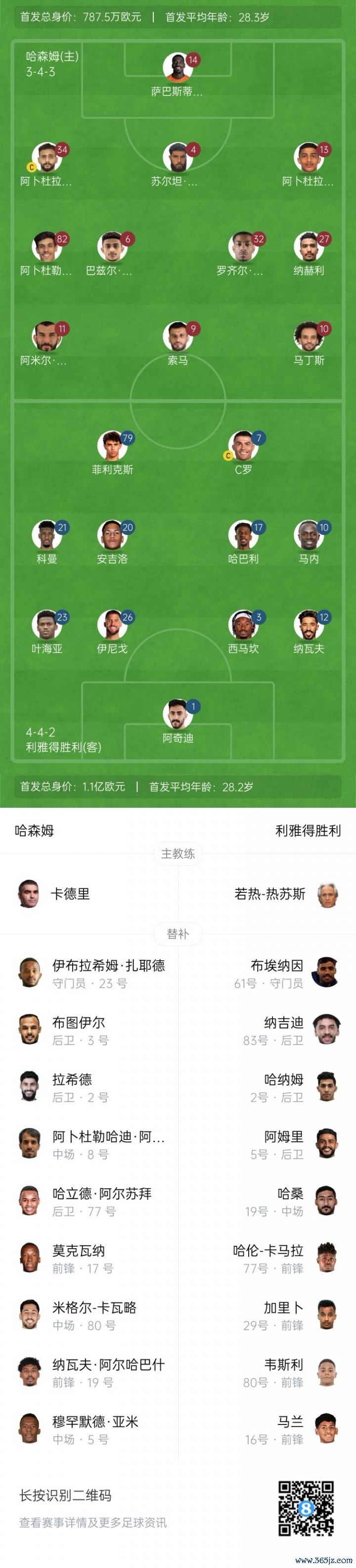 10月26日讯 沙特联第6轮,哈森姆主场迎战利雅得胜利, 田径新闻直播吧赛前首发名单公布。