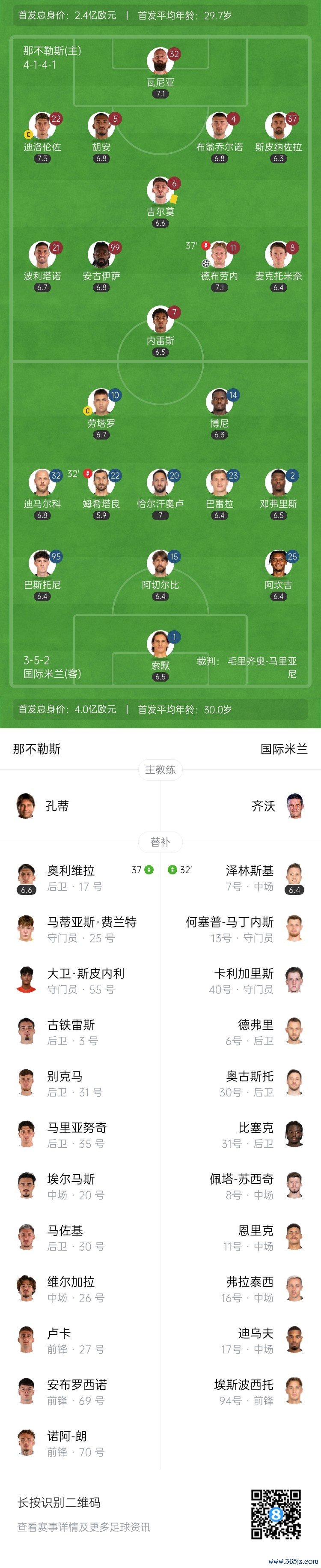 第15分钟,那不勒斯后场传球失误,劳塔罗禁区内半单刀的机会,打门被瓦尼亚挡出↓