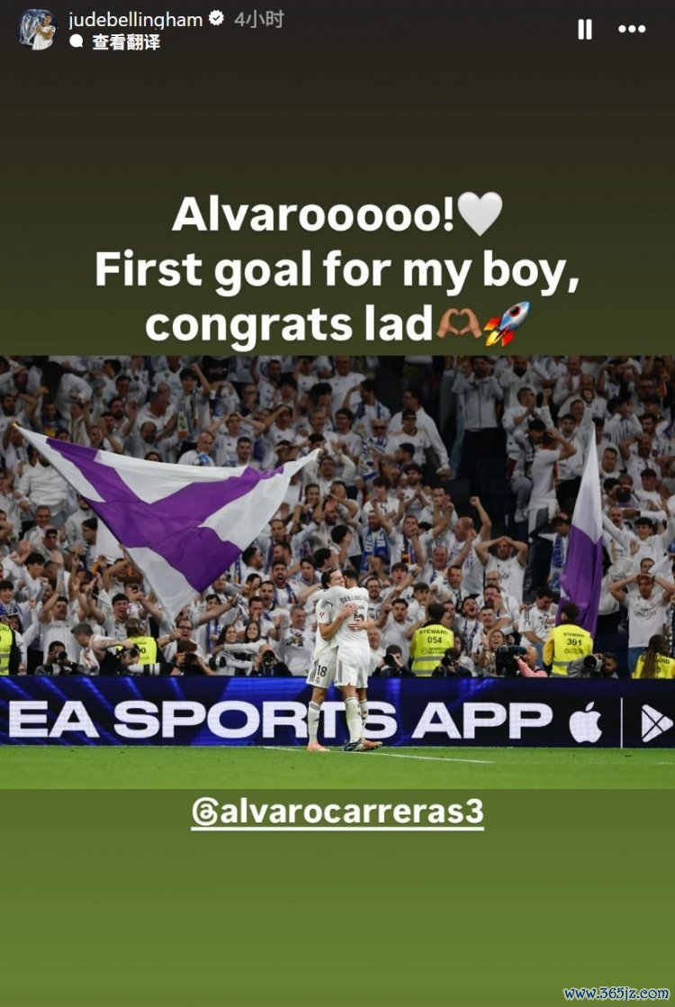 本场比赛贝林厄姆破门, 田径新闻英超直播而卡雷拉斯则用一脚世界波打入皇马生涯首球。赛后贝林厄姆社媒晒出与卡雷拉斯合影, 伯恩茅斯配文写道:“阿尔瓦罗!祝贺兄弟取得皇马首球!”