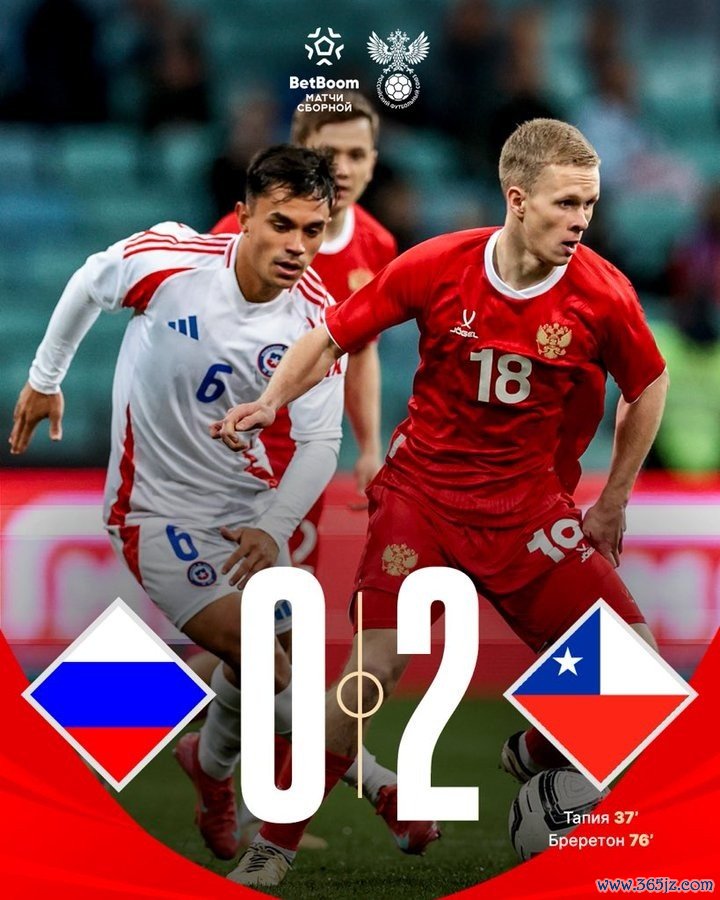 11月16日讯 今天凌晨,俄罗斯在友谊赛中0-2不敌智利。