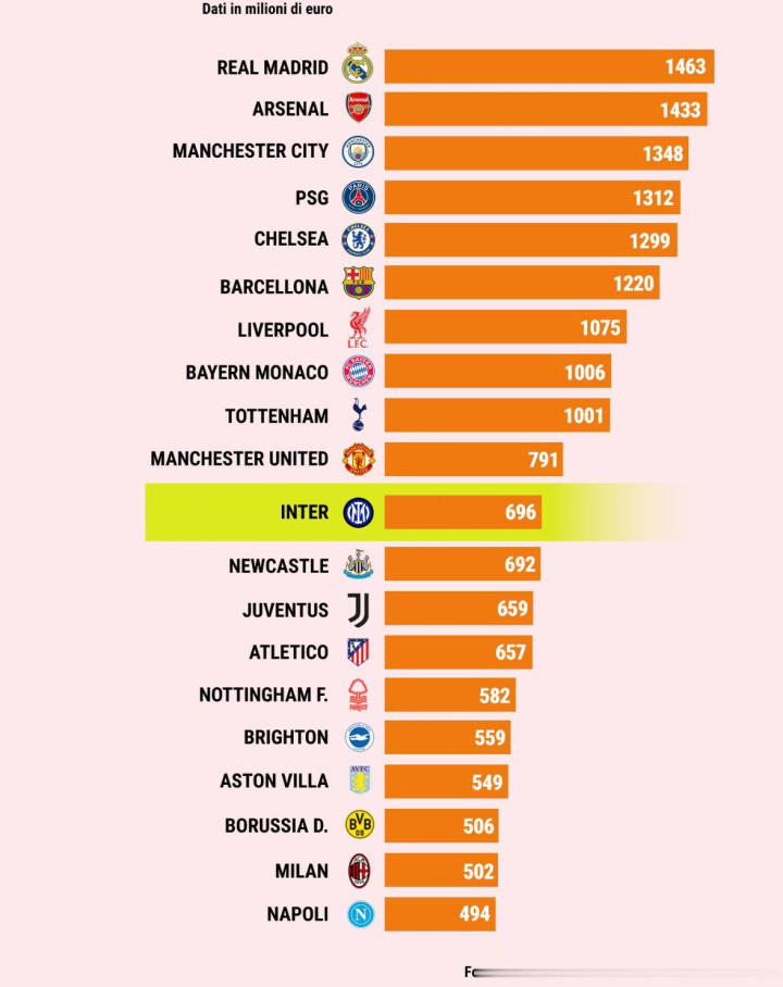 国米资方希望蓝黑军的估值能达到10亿欧元——也就是达到拜仁慕尼黑、托特纳姆热刺的水平。