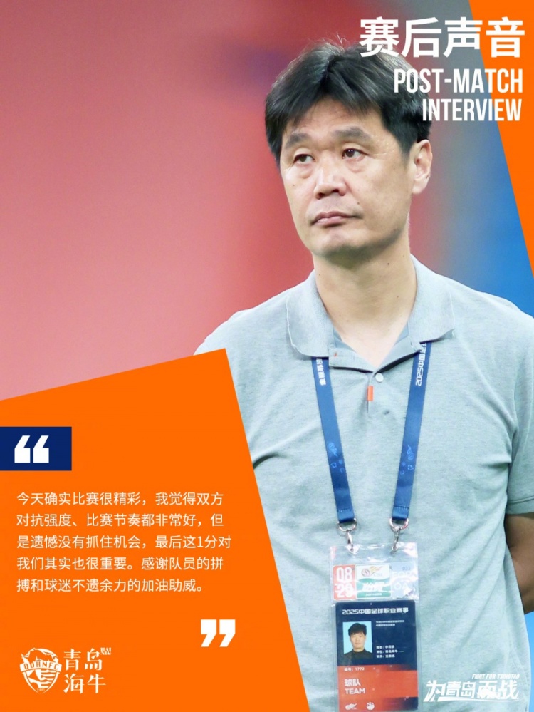 李霄鹏:今天确实赛事 很出色 ,这1分对我们其实也很重要