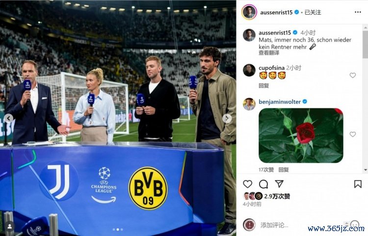 曾效力多特的德国足坛名宿胡梅尔斯加入 了这场赛事 的现场评述工作中超直播在线观看高清直播免费,退役不久的他在社交媒体上晒出照片, 田径新闻直播吧配文:“马茨(胡梅尔斯), 伯恩茅斯依然36岁,田径新闻不再是退休人士了。”