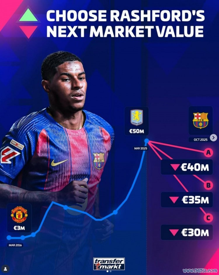 9月21日讯 德转将在10月2日对西甲球员身价进行更新,拉什福德身价预计将会下跌。
