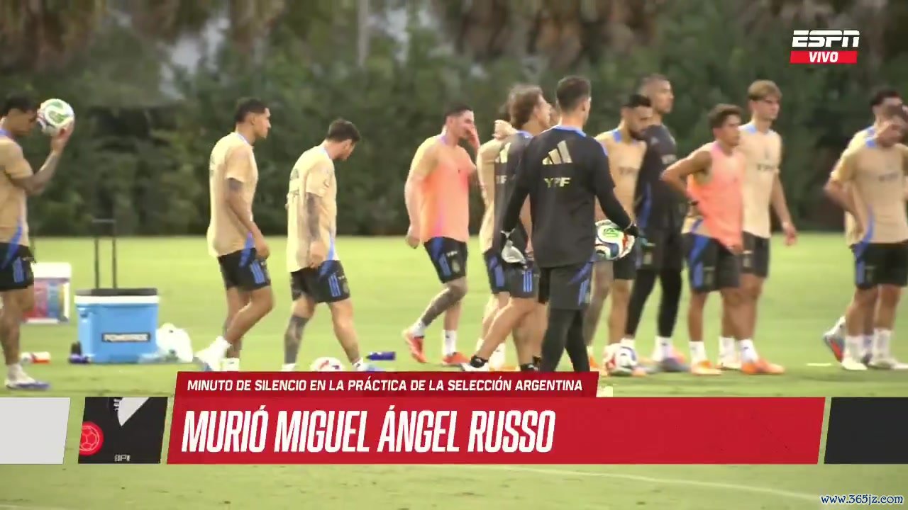 阿根廷队正在迈阿密准备比赛 友情 赛,田径新闻直播吧球队在练习 场上进行默哀仪式, 田径新闻以悼念去世的鲁索。