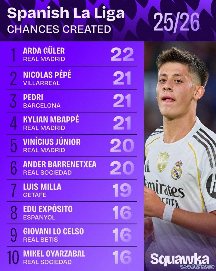 10月7日讯 日前,Squawka统计了本赛季西甲创造机会次数排行,田径新闻足球直播居勒尔22次居首。