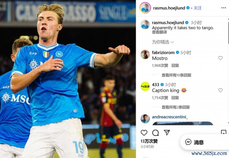 10月6日讯 在那不勒斯2-1反转 热那亚后,得分 功臣霍伊伦更新了社交媒体。