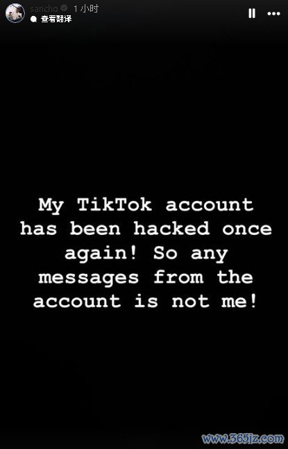 桑乔写道:“我的TikTok账号又一次被盗了!所以任何来自该账号的消息都不是我本人发的!”