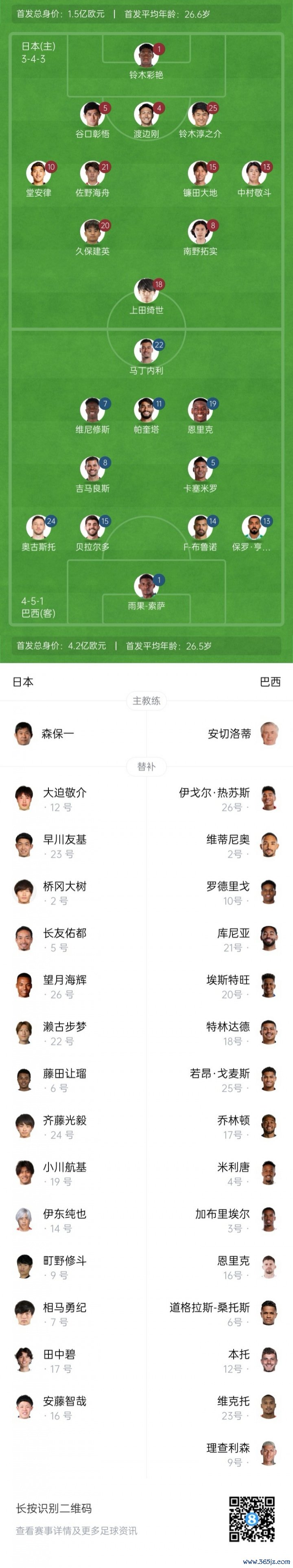 10月14日讯 北京时间今晚18:30,国际友情 赛麒麟应战 杯,日本国家队主场作战 迎战巴西国家队。赛前杆位阵形 已经公布。日本队历史13次交手巴西11负2平从未取胜,田径新闻直播吧本场赛前日本国内喊出了冲击对五星巴西首胜的口号。