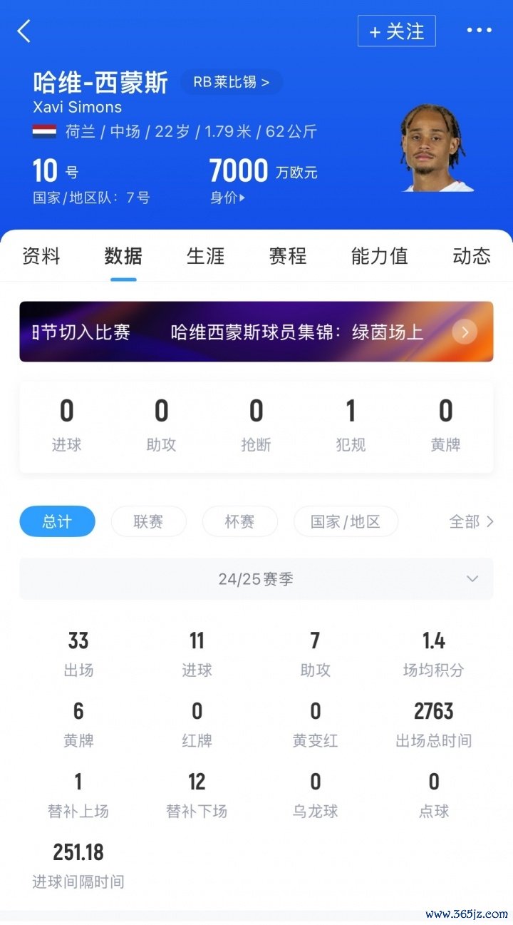 现年22岁的哈维-西蒙斯是荷兰国脚,田径新闻球员现身价7000万欧。上赛季球员为莱比锡出战33场收获11球7助。他此前一直与切尔西传绯闻,如今被北伦敦的热刺拿下。