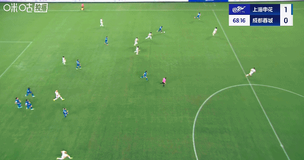 第61分钟,高天意开出右侧底线球被解围,陈晋一危险区域 外远射打在防卫 球员身上弹出端线 。随后高天意再次开出底线球,朱辰杰小危险区域 无人防卫 顶球偏出。第63分钟,蓉城左后场直塞,古尔芬克尔摆脱马纳法的防卫 后倒三角传中到危险区域 线附近,罗慕洛跟上左脚低射偏出。第68分钟,申花打出快攻,右后场球员马纳法从左后场带球到前场送出直塞,与他临时换位的左后场球员陈晋一从右侧插上,面对防卫 古尔芬克尔和出击的守门员刘殿座推射破门,申花1比0领跑 。