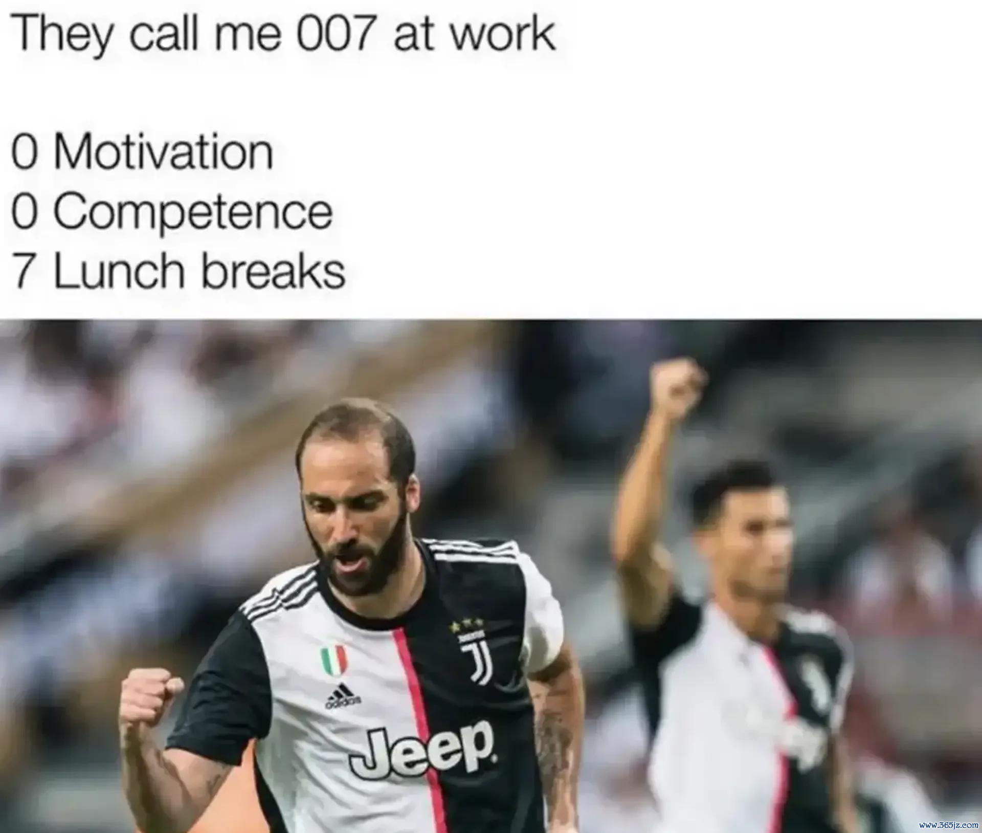 有趣的是,桑乔并非古代足球 圈“007特工”梗的首位受害者。KnowYourMeme网站提到,尤文图斯时期的伊瓜因是最早的改编案例之一——但当时他的数据是0球0助功 。