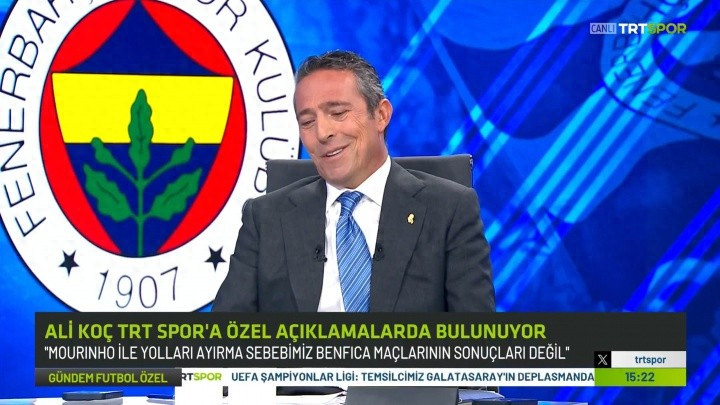 直播吧09月18日讯 费内巴切俱乐部主席阿里-科奇最近作客土耳其TRT体育节目,谈到了穆里尼奥遭本菲卡出局 出欧冠后,被费内巴切解雇转而执教本菲卡的话题。